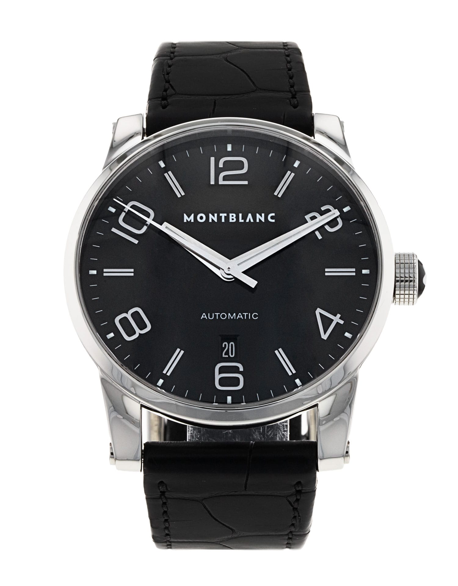 This Montblanc TimeWalker 9674 has a black arabic dial and a leather strap. This Montblanc has undergone a thorough inspection of water resistance, accuracy, functionality and condition to determine the level of reconditioning required to meet our strict standards. It has also been referenced against technical documents and manufacturer records where available to ensure authenticity and a clean history. All our watches have a 24-month warranty for your peace of mind.