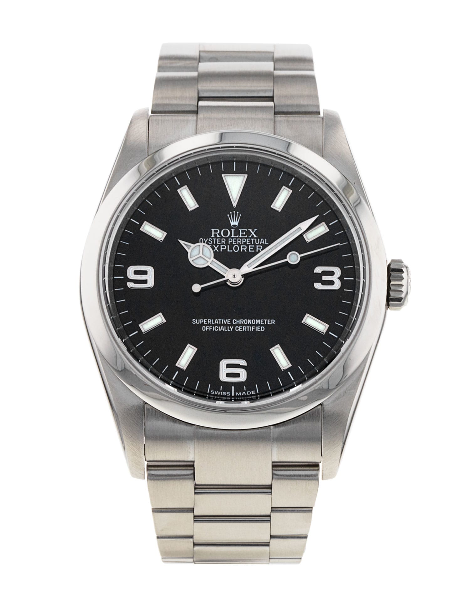 This Rolex Explorer 114270 has a black quarter arabic dial and a bracelet strap. This Rolex has undergone a thorough inspection of water resistance, accuracy, functionality and condition to determine the level of reconditioning required to meet our strict standards. It has also been referenced against technical documents and manufacturer records where available to ensure authenticity and a clean history. Our watches have a 24-month warranty for your peace of mind, in conjunction with any remaining manufacturer’s warranty from new or from service. To maintain the manufacturer’s warranty on this watch, it has not been polished in our service centre.