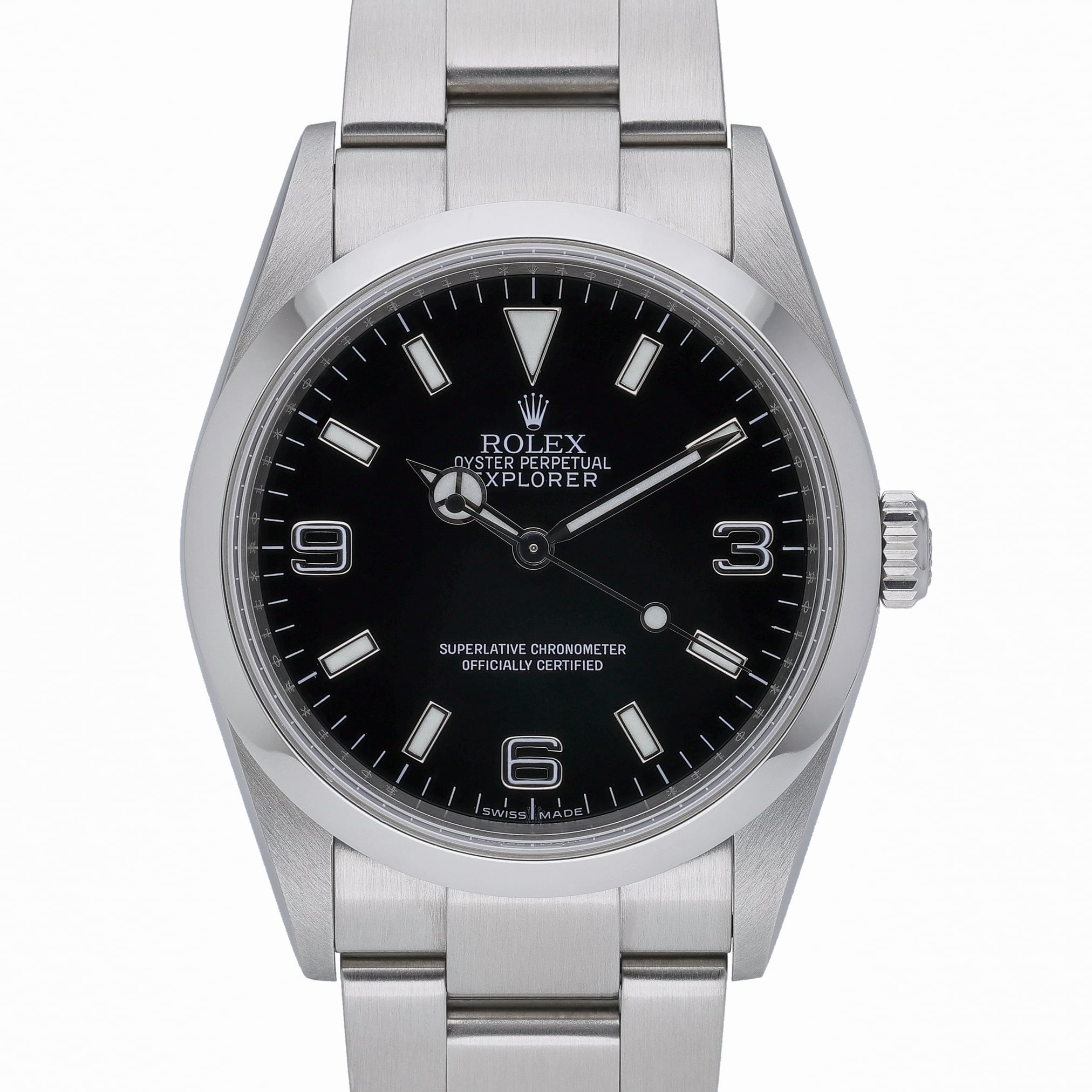This Rolex Explorer 114270 has a black quarter arabic dial and a bracelet strap. This Rolex has undergone a thorough inspection of water resistance, accuracy, functionality and condition to determine the level of reconditioning required to meet our strict standards. It has also been referenced against technical documents and manufacturer records where available to ensure authenticity and a clean history. All our watches have a 24-month warranty for your peace of mind. One of our skilled polishing technicians has removed marks on the case and bracelet of this watch, brought about by daily wear and tear, which is why this watch does not come with the remaining manufacturer’s warranty.