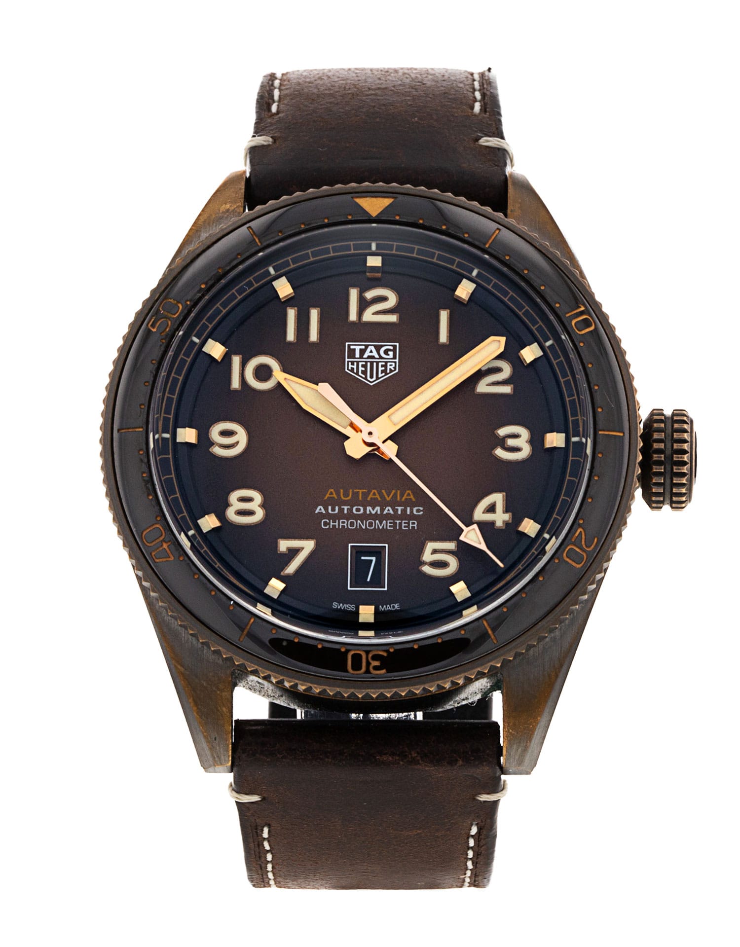 This Tag Heuer Autavia WBE5191.FC8276 has a brown arabic dial and a leather strap. This Tag Heuer has undergone a thorough inspection of accuracy, functionality and condition at our Tag Heuer certified service centre to determine the level of reconditioning required to meet our strict standards. It has also been checked against our records to ensure authenticity. Our watches have a 24-month warranty for your peace of mind, in conjunction with any remaining manufacturer’s warranty from new or from service.